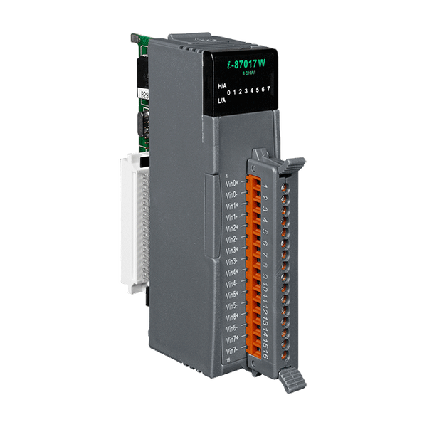 Moduł I-87017RW to moduł wejść analogowych wyposażony w niezwykle wysokiej jakości mechanizm ochrony, gdzie ochrona przed przepięciami może wynosić nawet 240 Vrms. Typ wejścia można ustawić na napięcie lub prąd. I-87017RW to ulepszona wersja I-87017W, z tą różnicą, że I-87017RW jest bardziej odpowiedni do ekstremalnie trudnych warunków środowiskowych. Szybkość próbkowania dla I-87017RW może być dostosowana do trybu szybkiego lub normalnego w zależności od indywidualnych wymagań. I-87017RW oferuje również ochronę ESD 4 kV oraz izolację między modułową 3000 VDC.Zastosowania