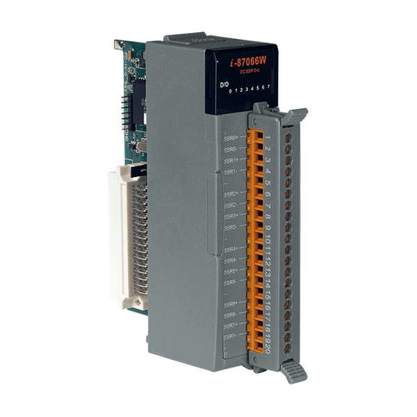 Moduł I-87066W oferuje 8 wyjściowych kanałów przekaźnika półprzewodnikowego DC (SSR). W porównaniu do przekaźników elektromagnetycznych, technologia SSR zapewnia szybszy czas reakcji i większą wytrzymałość elektryczną. Integracja technologii DC SSR eliminuje również potencjalne problemy z iskrzeniem, odbijaniem i hałasem przełączania. I-87066W posiada 8 wskaźników LED, które mogą być używane do monitorowania stanu wyjść SSR, a także dostępne są opcje konfigurowania wartości przy włączeniu oraz wartości bezpiecznych. Moduł zapewnia również ochronę ESD 4 kV i 3000 VDC izolację wewnętrzną modułu, co zwiększa jego odporność na zakłócenia w trudnych warunkach przemysłowych.Zastosowania