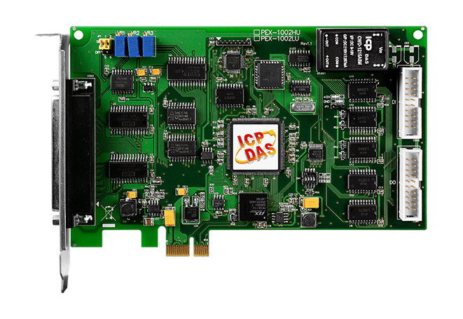 Karta PEX-1002L obsługuje magistralę PCI Express. Te karty są rodziną płyt A/D i cechują się niskim wzmocnieniem 110 kS/s AI. Zapewniają 12-bitowe 32 jednokońcowe lub 16 różnicowych kanałów AI, 16 kanałów DI i 16 kanałów DO.