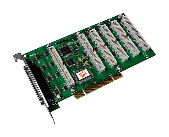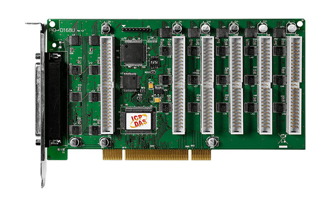 Uniwersalna karta PCI PIO-D168U wspiera magistralę PCI 3.3 V/5 V. Karty te oferują 168 linii cyfrowych TTL Wejścia/Wyjścia, które są pogrupowane w osiemnaście 8-bitowych portów dwukierunkowych. Każde trzy porty na złączu są pogrupowane i nazwane jako port A (PA), port B (PB) oraz port C (PC). Wszystkie porty są skonfigurowane jako wejścia po włączeniu zasilania lub resecie.
