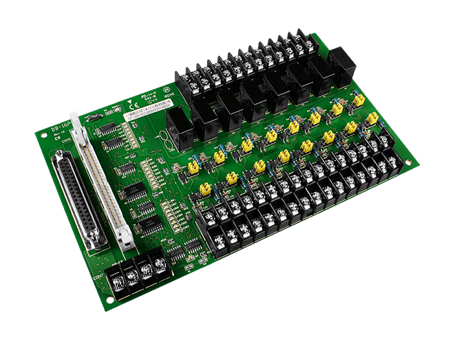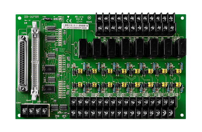 DB-16P8R to 16-kanałowa izolowana karta wejść cyfrowych oraz 8-kanałowa karta wyjść przekaźnikowych dla kart DIO24, DIO48, DIO144, PIO-D144U, PIO-D96U oraz PIO-D48U kompatybilnych z OPTO-22.Zastosowania