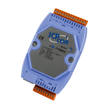 I-7188EA to kontroler programowalny o wielkości dłoni z interfejsami komunikacyjnymi RS-232/485 oraz Ethernet. I-7188EA posiada 7 kanałów wyjść cyfrowych i 6 kanałów wejść, aby sprostać różnym wymaganiom I/O. ICP DAS dostarcza łatwe w użyciu zestawy narzędzi programistycznych (XServer, biblioteki Modbus).