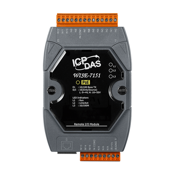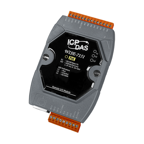 Moduł WISE-7151 obsługuje protokół Modbus/TCP, co umożliwia bezproblemową integrację z oprogramowaniem SCADA. Posiada 16-kanałowe izolowane wejścia cyfrowe typu wet contact. Każdy kanał wejścia cyfrowego obsługuje wejście licznika.