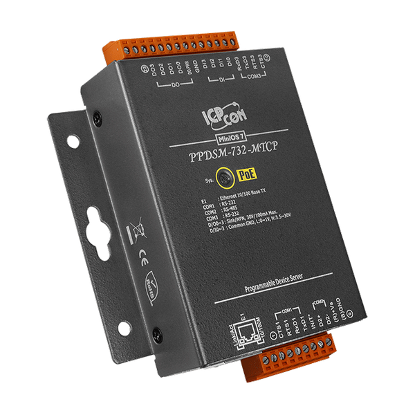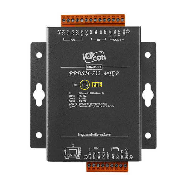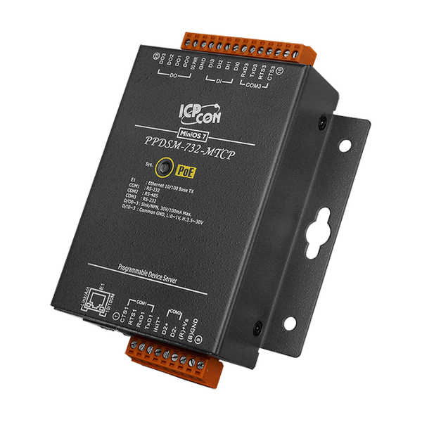 Modele PDS(M)-732(D) i PPDS(M)-732(D)-MTCP są wyposażone w 2 porty RS-232, 1 port RS-485 oraz DI/DO. Wymienny terminalowy blok złączy na pokładzie jest zaprojektowany do łatwego i solidnego okablowania w warunkach przemysłowych.