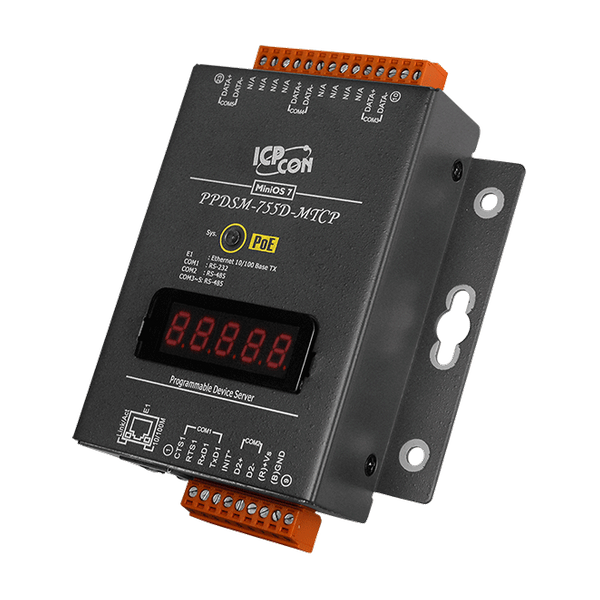 PDS(M)-755(D) i PPDS(M)-755(D)-MTCP są wyposażone w 1 port RS-232 i 4 porty RS-485. Odłączalny onboardowy konektor blokowy terminala jest zaprojektowany do łatwego i solidnego okablowania w sytuacjach przemysłowych.