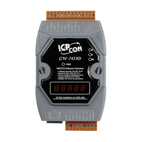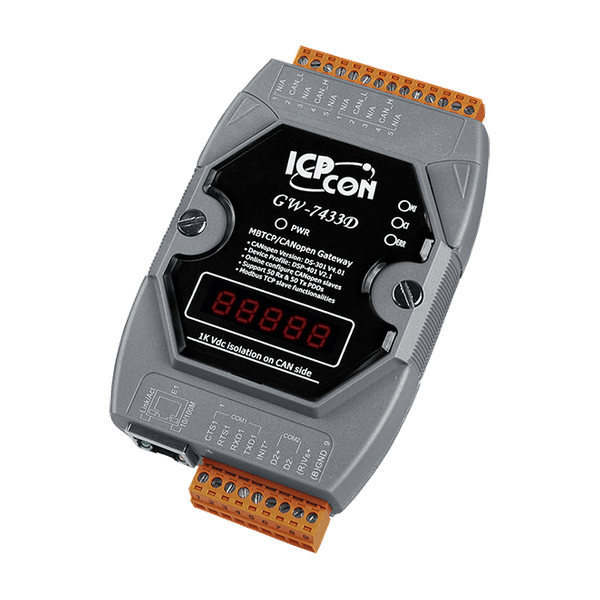 - Możliwość uzyskania stanu komunikacji urządzeń CANopen i GW-7433D za pomocą komend Modbus
