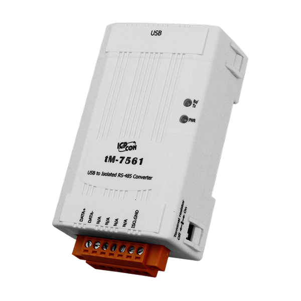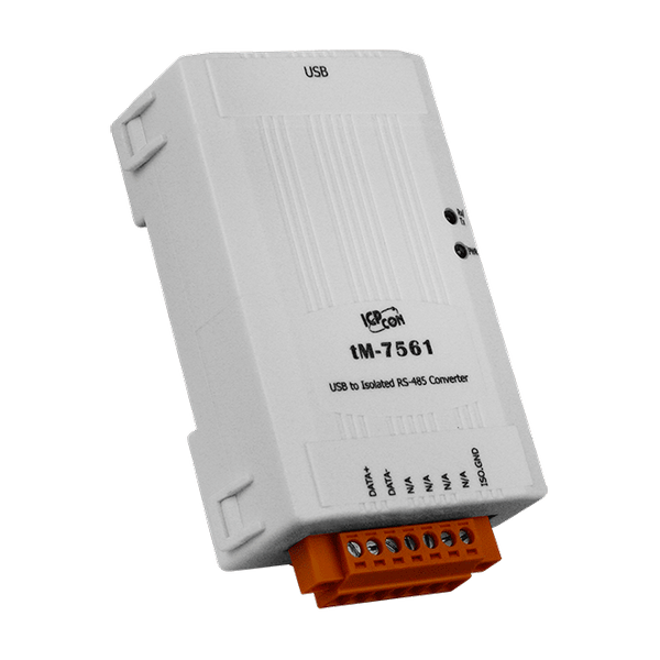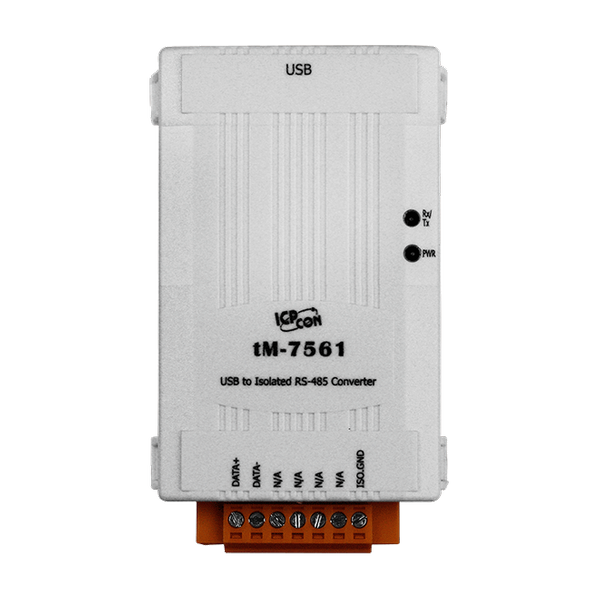tM-7561 to ekonomiczny konwerter USB na RS-485. Podłączając tM-7561 do komputera, uzyskujesz port RS-485, który umożliwia dostęp do urządzeń RS-485 przez interfejs USB. Podobnie jak I-7520, tM-7561 zawiera układ „Self-Tuner”, który automatycznie dostraja prędkość transmisji i format danych do sieci RS-485. Moduł tM-7561 pobiera zasilanie z portu USB i nie wymaga zewnętrznego zasilacza.