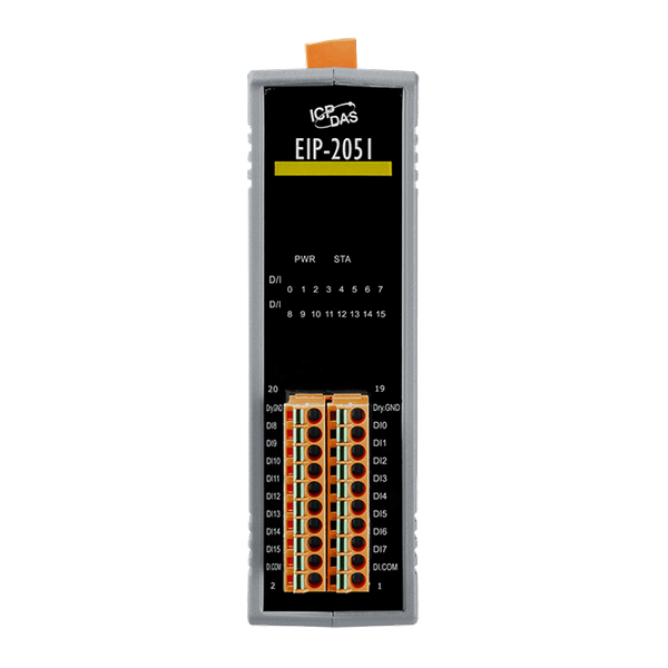 EIP-2000 to seria przemysłowych modułów zdalnego I/O wspierających protokół EtherNet/IP. Użytkownicy mogą z łatwością zintegrować te moduły w sieci Ethernet od poziomu przemysłowego do korporacyjnego. EIP-2000 umożliwia połączenie w łańcuchu daisy, co pozwala na elastyczne umieszczenie urządzeń, ułatwia instalację i obniża koszty infrastruktury. Wszystkie moduły mogą być wdrażane w topologiach sieci takich jak gwiazda, linia lub pierścień. Projekt izolacyjny chroni EIP-2000 przed szkodliwymi zakłóceniami. EIP-2051 to zdalny moduł wejść cyfrowych z 16 wejściami. Jest on zaprojektowany jako adapter EtherNet/IP. Użytkownicy mogą uzyskać status wejść oraz status połączenia EIP-2051 za pomocą wskaźników LED. Dodatkowo, ICPDAS dostarcza narzędzie programowe ułatwiające konfigurację i testowanie modułów EIP-2000 poprzez Ethernet.