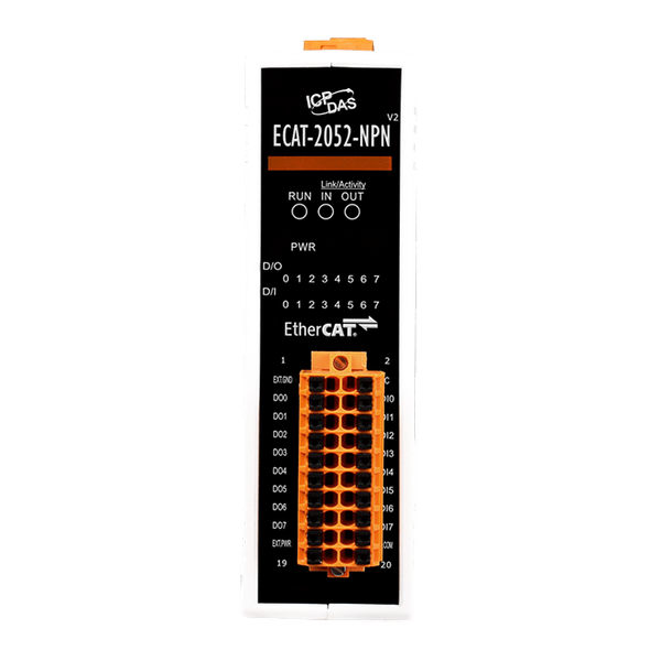 ECAT-2000 jest wyposażony w protokół EtherCAT i instalowany poprzez połączenie łańcuchowe, co umożliwia elastyczność w instalacji urządzeń i redukuje koszty infrastruktury i operacji. Wszystkie moduły mogą być wdrożone w topologiach sieciowych, takich jak gwiazda, linia lub pierścień. Izolowane wejścia i wyjścia chronią ECAT-2000 przed szkodliwymi zakłóceniami i środowiskiem. ECAT-2052-NPN posiada wbudowane izolowane 8 wejść cyfrowych i 8 wyjść cyfrowych. Użytkownicy mogą uzyskać status wejść i wyjść nie tylko za pomocą danych procesów, ale także z jego wskaźników LED. Produkt przeszedł test zgodności, co sprawia, że dowolny zgodny Master EtherCAT lub konfigurator może go łatwo obsługiwać i wdrażać w różnych zastosowaniach.Zastosowania