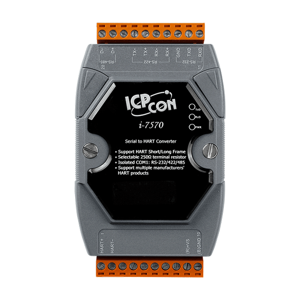 Umożliwia użytkownikom dostęp do urządzeń slave HART za pomocą RS-232 / RS-422 / RS-485. Te urządzenia slave HART mogą być nadajnikami, aktuatorami, urządzeniami wyjściowymi prądu itp. Dodatkowo, korzystając z narzędzia I-7570, użytkownicy mogą łatwo i szybko konfigurować moduł i testować komunikację HART.