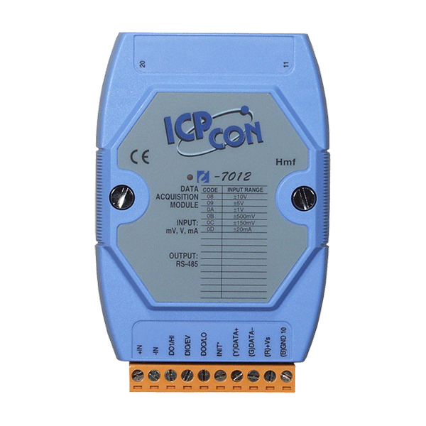 I-7012 to moduł wejść analogowych zaprojektowany zarówno dla wejść napięciowych, jak i prądowych. Dodatkowo, moduł oferuje 1 kanał wejścia cyfrowego działający jako przetwornik zdarzeń przy 50 Hz oraz 2 kanały wyjść cyfrowych, które mogą być używane jako alarmy wysoki/niski. I-7012 oferuje również izolację wewnątrzmodułową na poziomie 3000 VDC. I-7012F to moduł wejść analogowych zaprojektowany zarówno dla wejść napięciowych, jak i prądowych. Szybkość próbkowania dla wersji I-7012F jest regulowana i może być przełączana między trybem szybkim a normalnym w zależności od wymagań. Moduł oferuje również 1 kanał wejścia cyfrowego działający jako przetwornik zdarzeń przy 50 Hz oraz 2 kanały wyjść cyfrowych, które mogą być używane jako alarmy wysoki/niski. I-7012F oferuje również izolację wewnątrzmodułową na poziomie 3000 VDC.