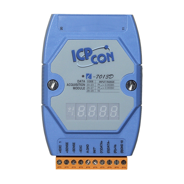 Moduły I-7013(D) i M-7013P(D) to jednostki jednowejściowe RTD do pomiaru temperatury za pomocą czujnika RTD, obsługujące czujniki typu Pt100, Ni120 oraz Pt1000. Moduł pozwala na podłączenie czujników RTD w konfiguracji 2/3/4-przewodowej oraz posiada funkcję wykrywania otwartych przewodów. Dodatkowo, moduły I-7013(D) i M-7013P(D) oferują izolację wewnątrzmodułową o wartości 3000 VDC i obsługują eliminację rezystancji przewodów dla połączeń 3/4-przewodowych. M-7013P i M-7013PD dodatkowo obsługują 1-kanałowe wejście cyfrowe jako licznik zdarzeń 50 Hz oraz 2-kanałowe wyjście cyfrowe jako alarm wysoki/niski. M-7013P i M-7013PD obsługują protokoły Modbus RTU oraz DCON, które można konfigurować za pomocą oprogramowania.