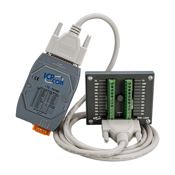 I-7018Z/M-7018Z to 10-kanałowy moduł uniwersalny wejść analogowych z interfejsem RS-485, zaprojektowany specjalnie do bardzo dokładnych pomiarów termoparowych i wyposażony w automatyczną kompensację zimnego złącza dla każdego kanału, co zapewnia spójność wyników pomiarów temperatury i stabilność wyjścia temperatury w terenie. Innowacyjna konstrukcja ulepszonego modelu zapewnia, że pomiary termoparowe są bardziej dokładne niż w przypadku wcześniejszych modeli. Oprócz wejść termoparowych, I-7018Z/M-7018Z obsługuje również wejścia napięciowe i prądowe. Zakres wejść napięciowych może wynosić od ±15 mV do ±2,5 V. Do jednego modułu można podłączyć do 10 różnych typów wejść analogowych. Moduł oferuje ochronę przed przepięciem do 240 Vrms oraz wykrywanie otwartego obwodu dla termopar i kanałów wejściowych +4 ~ +20 mA. M-7018Z dodatkowo obsługuje protokoły Modbus RTU i DCON, które mogą być konfigurowane za pomocą oprogramowania, a wszystkie specyfikacje sprzętowe są takie same jak w przypadku I-7018Z.