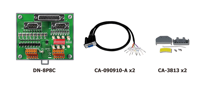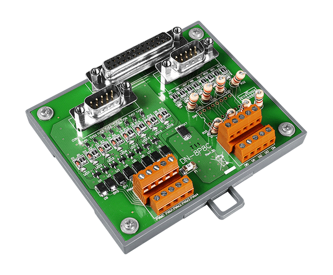 Moduł zewnętrzny DN-8P8C może być używany do tworzenia wydajnych i ekonomicznych systemów sterowania analogowego. Moduł oferuje 8 kanałów wyjściowych cyfrowych oraz 8 kanałów wejściowych liczników dla modułów I-8088W, I-87088W, CAN-2088 lub I-7088, umożliwiając zwiększenie napięcia obciążenia od +3,5 do +50 V dla 8-kanałowego wyjścia PWM (modulacja szerokości impulsu) oraz 8-kanałowego szybkiego licznika.