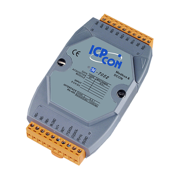 M-7052/M-7052D oferuje 6 w pełni niezależnych kanałów, które mogą być używane indywidualnie dla urządzeń z różnymi poziomami napięć oraz 2 wspólne kanały masy dla wejść cyfrowych. Wejścia różnicowe charakteryzują się izolacją międzykanałową. Można wybrać wejście typu drenowego lub źródłowego poprzez połączenia przewodowe, a wszystkie kanały mogą być również używane jako liczniki 16-bitowe. M-7052D posiada 8 wskaźników LED do monitorowania statusu kanałów. M-7052(D) obsługuje protokoły Modbus RTU i DCON, które można konfigurować za pomocą oprogramowania. Standardem jest ochrona przed wyładowaniami elektrostatycznymi 4 kV oraz izolacja wewnątrzmodułowa 5000 Vrms, a wszystkie specyfikacje sprzętowe są takie same jak w przypadku I-7052(D).