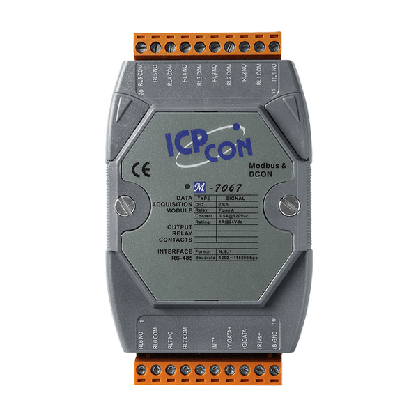 M-7061/M-7061D oferuje 12 przekaźnikowych wyjść o wysokiej mocy, a M-7067/M-7067D oferuje 7 sygnałowych wyjść przekaźnikowych. M-7061D ma 12 wskaźników LED, a M-7067D ma 7 wskaźników LED do monitorowania statusu kanałów. Urządzenia M-7061(D)/M-7067(D) obsługują protokoły Modbus RTU i DCON, które można konfigurować za pomocą oprogramowania. Istnieje także możliwość konfiguracji wartości początkowej i wartości bezpiecznej.
