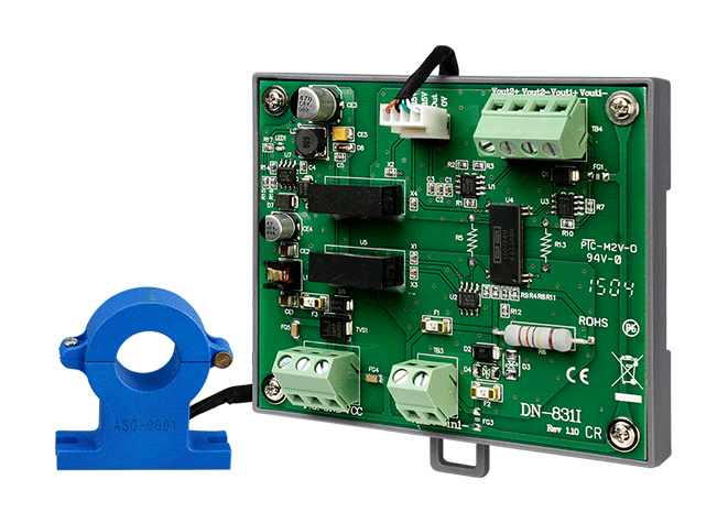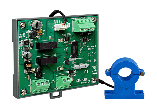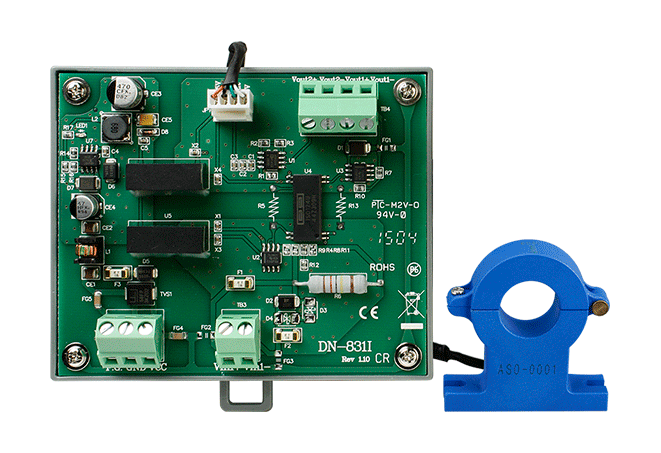 DN-831I-100V-500A jest 1-kanałowym tłumikiem napięcia i 1-kanałowym transformatorem prądu. Maksymalny zakres napięcia wejściowego wynosi od ±100 V i może być tłumiony do ±10 V, a maksymalny zakres prądu wejściowego wynosi ±500 A i może być tłumiony do ±10 V. Urządzenie zapewnia izolację między modułami 3000 VDC oraz izolację między kanałami 3000 VDC, co umożliwia uniknięcie zakłóceń szumowych z wejść na wyjścia lub między kanałami. Może być używane z modułami wejścia analogowego takimi jak I-7017, I-87017, M-7017RMS oraz I-87017W-RMS itd. do pomiaru wysokiego prądu.