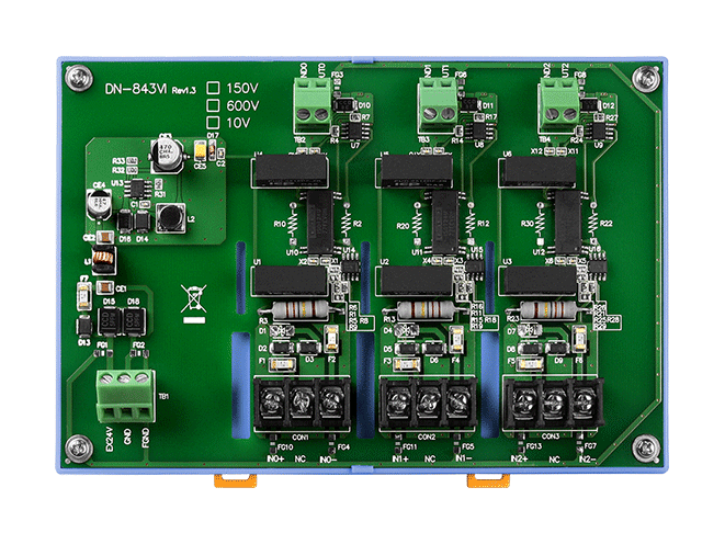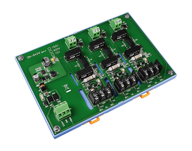 Seria DN-800V to tłumiki napięcia wejściowego. Maksymalny zakres wejściowy wynosi od ±80 V do ±600 V i może być stłumiony do ±10 V. Wersja "I" zapewnia izolację między modułami o napięciu 3000 VDC oraz izolację kanał-kanał o napięciu 3000 VDC, aby zapobiec zakłóceniom szumów z wejść na wyjścia lub między kanałami. Może być używany z modułami wejść analogowych takimi jak I-7017 i I-87017 itd. do pomiaru wysokiego napięcia.