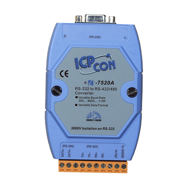 Większość przemysłowych systemów komputerowych oferuje standardowe porty szeregowe RS-232. Choć szeroko akceptowane, RS-232 ma ograniczoną prędkość transmisji, zasięg i możliwości sieciowe. Standardy RS-485 przezwyciężają te ograniczenia, wykorzystując różnicowe linie napięciowe do sygnałów danych i kontrolnych, które w sposób przejrzysty konwertują sygnały RS-232 na izolowane sygnały RS-485, bez potrzeby zmiany jakiegokolwiek sprzętu lub oprogramowania. I-7520 pozwala łatwo zbudować przemysłowej klasy system komunikacji na duże odległości, wykorzystując standardowy sprzęt PC.