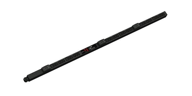 Monitored and switched rack power distribution unit (0U [vertical], 22.2kVA, 36 outlets). INPUT: 400v (3-phase WYE), 32a - IEC 60309 3P+N+E 6h 32A plug (4P5W); OUTPUT: 30@ C13, 6@ C19 outlets; on 6@ 1-pole, 16a Overcurrent Protectors; FEATURES: Billing-Grade (+/- 1%) Energy Metering [kW, kVA, V, A, Power Factor] - per inlet, per breaker/fuse, per outlet; Remote Outlet Switching (No|rmally-Open Relays); 3-digit LED user-selectable display (voltage, current, or active power : per line, per breaker or per receptacle / outlet). Auto-flip orientation; Remote network monitoring via HTML, JSON-RPC, SSH, Telnet, MODBUS/TCP, and SNMPv3. Onboard embedded processor with minimum 400MHz clock speed, 16MB Flash, and 64MB RAM. Environmental monitoring [temp/humidity] capable