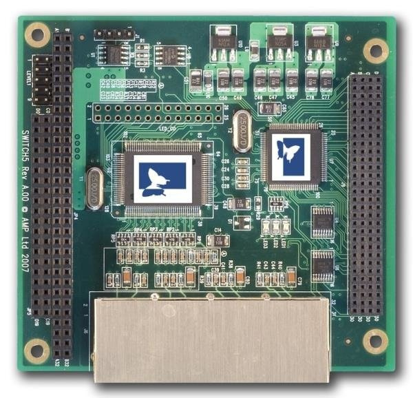AMP LANSwitch-EXT jest przemysłowym wieloportowym przełącznikiem Ethernet w standardzie PC/104-Plus. LANSwitch-EXT posiada pięcioportowy przełącznik 10/100Mbit z czterema zewnętrznymi połączeniami kablowymi oraz połączenie przewodowe z wbudowanym kontrolerem PCI Ethernet.