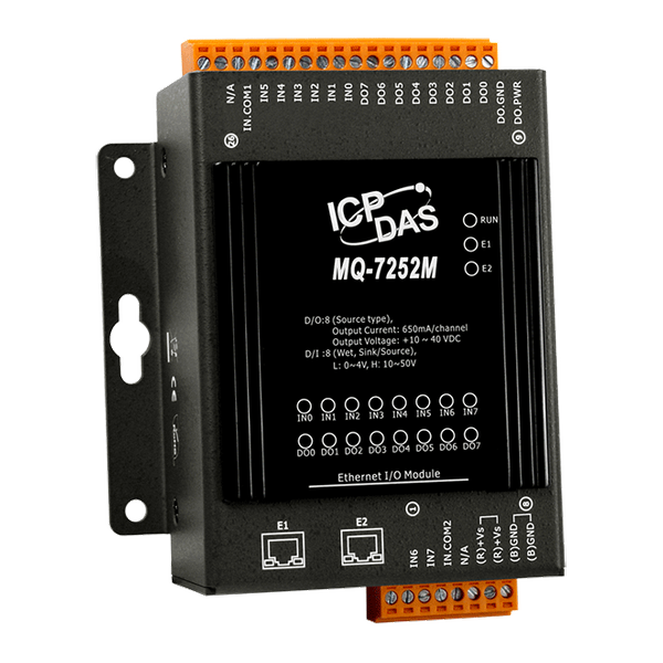 MQ-7252M to urządzenie Ethernet I/O wyposażone w 8-kanałowe wejścia DI i 8-kanałowe wyjścia DO, obsługujące protokoły MQTT oraz Modbus TCP, które umożliwiają łączenie z różnego rodzaju cyfrowymi czujnikami w aplikacjach Przemysłowego Internetu Rzeczy (IIoT). Dostępny interfejs webowy umożliwia konfigurację modułu, monitorowanie statusu połączenia sieciowego i stanu I/O oraz sterowanie kanałami wyjść cyfrowych na module za pomocą przeglądarki internetowej na urządzeniu mobilnym lub komputerze.