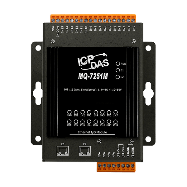 MQ-7251M to urządzenie I/O Ethernet wyposażone w 16-kanałowy DI oraz protokoły MQTT i Modbus TCP, które są obsługiwane do połączenia z różnymi czujnikami cyfrowymi w aplikacjach Przemysłowego Internetu Rzeczy (IIoT). Przyjazny interfejs użytkownika oparty na przeglądarce internetowej pozwala użytkownikom konfigurować moduł oraz uzyskiwać dostęp do statusu połączenia sieciowego i statusu I/O za pomocą normalnej przeglądarki na urządzeniu mobilnym lub komputerze.