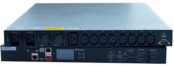 PX3TS-1875R - Hybrydowy SZR zintegrowany z iPDU:: 1 faza, 230V AC, 16A, 9 gniazdek (8x C13, 1x C19), wtyczka zasilająca: 2x IEC 60309 16A, 3.3kVA, format 1U, 2x USB-A, USB-B, Eth, port szeregowy i czujników środowiskowych. Czas przełączania źródła zasilania 4-8ms.