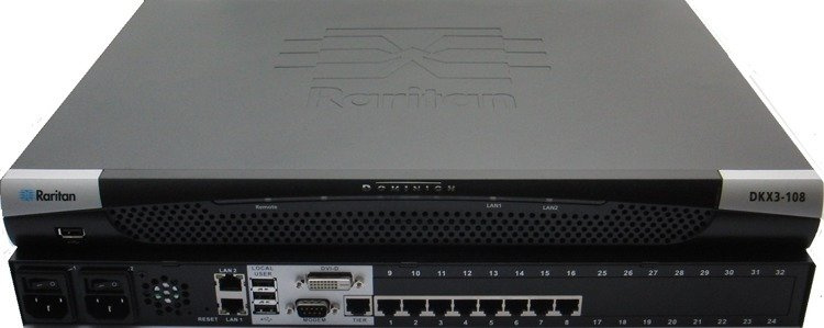 DKX3-108 - Przełącznik KVM-over-IP z 8 portami serwerów, możliwością jednoczesnego używania przez 1 użytkownika zdalnego i 1 użytkownik lokalnego, obsługa wirtualnych mediów, redundantny zasilacz, temperatura pracy: 0ºC ~ 45ºC, 2 porty GbE LAN, złącze DVI-D (F), cztery złącza USB, maksymalna rozdzielczość 1920x1200, standard 1U, możliwość montażu w szafie RACK (mocowania w zestawie).
