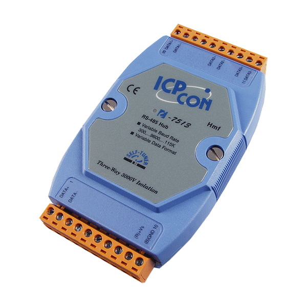 I-7513 to aktywne 3-kanałowe gwiaździste okablowanie RS-485. Urządzenie posiada trzy niezależne kanały wyjściowe RS-485, każdy z własnym sterownikiem, który może przesyłać sygnały na odległość do 4000 ft (1200 m) na każdym kanale.