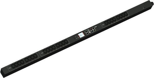 Najwyższej jakości przemysłowa, inteligentna listwa zasilająca (iPDU) z funkcjami monitorowania i przełączania przeznaczona do szaf typu rack (0U [Pionowa], 11.1kVA, 24 gniazda). Moc wejściowa: 400v (3 fazy), 16a - IEC 60309 3P+N+E 6h 16A wtyczka (4P5W); WYJŚCIA: 24x C13 gniazda; Pomiar energii zgodny ze standardami rządowymi (+/- 1%) [kW, kVA, V, A, Współczynnik mocy] - na wejście, per outlet; Zdalne przełączanie gniazd (dwustanowe przekaźniki podtrzymujące);
