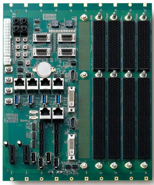 tBP-VPX6000 - 5-slotowa płyta testowa przeznaczona dla kart 6U z serii VPX6000 posiadająca wszystkie niezbędne złącza i porty dzięki którym umożliwia łatwe przetestowanie różnych konfiguracji przed zamontowaniem w docelowej lokalizacji.