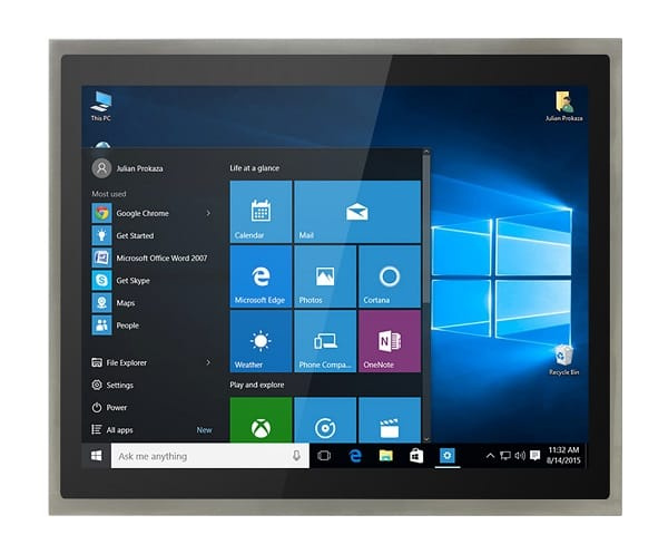 - Pojemnościowy ekran dotykowy (P-CAP) o przekątnej 15" i rozdzielczości 1024x768 z obsługą Multi-Touch