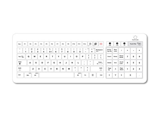 Odporna na zmywanie środkami chemicznymi i dezynfekującymi, bezprzewodowa szklana klawiatura medyczna - USB Bluetooth&RF, kolor biały