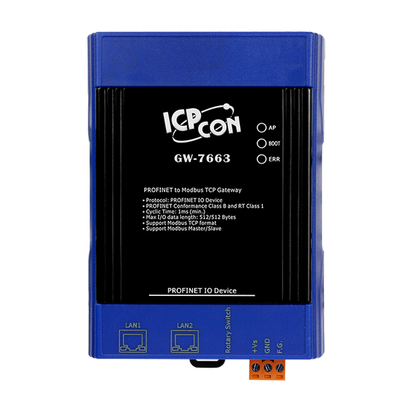 GW-7663 został specjalnie zaprojektowany dla urządzeń PROFINET IO. Pozwala sterownikowi PROFINET na dostęp do urządzeń Modbus TCP. Te urządzenia Modbus mogą być PLC, czujnikami, modułami ICPDAS I-8KE4-MCTP, modułami serii ET-7000 itp. Oferujemy również oprogramowanie użytkowe do konfiguracji GW-7663. Dzięki temu modułowi użytkownicy mogą łatwo włączyć swoje urządzenia Modbus do sieci PROFINET.