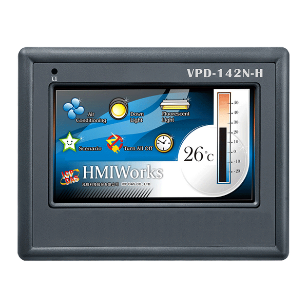 Seria TouchPAD VPD 4.3 cala H to seria przemysłowych urządzeń HMI z dotykowym ekranem o wysokiej rozdzielczości 4,3". Dzięki dotykowej technologii, łatwo ją wdrażać w różnego rodzaju systemach automatyzacji, czyniąc je bardziej intuicyjnymi i wydajnymi. Niezależnie od tego, czy instalujesz nowy system, czy modernizujesz istniejący, seria VPD wyróżnia się szeroką gamą metod komunikacji. Wbudowane porty komunikacyjne, w tym RS-232/RS-485 oraz Ethernet (VPD-143-H/143N-H), umożliwiają integrację z systemem, pozwalając użytkownikom na zdalne sterowanie, monitorowanie I/O oraz aktualizację oprogramowania bezpośrednio z centralnego komputera. Dodatkowo, wbudowana pamięć nieulotna sprawia, że seria VPD jest bardziej niezawodna w trudnych warunkach.