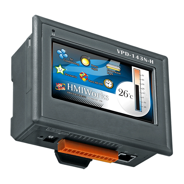 Seria TouchPAD VPD 4.3 cala H to seria przemysłowych urządzeń HMI z ekranem dotykowym o wysokiej rozdzielczości 4.3". Dzięki możliwości ekranu dotykowego, łatwo jest wdrożyć je do wszelkiego rodzaju systemów automatyzacji, co czyni je bardziej intuicyjnymi i efektywnymi. Niezależnie od tego, czy instalujemy nowe systemy, czy modernizujemy istniejące, seria VPD wyróżnia się szeroką gamą metod komunikacji. Wbudowane porty komunikacyjne obejmują RS-232/RS-485 oraz Ethernet (VPD-143-H/143N-H), co umożliwia integrację z systemem, pozwalając użytkownikom kontrolować, monitorować I/O na odległość oraz aktualizować oprogramowanie z centralnego komputera. Dodatkowo, wbudowana pamięć nieulotna sprawia, że seria VPD jest bardziej niezawodna w trudnych warunkach.