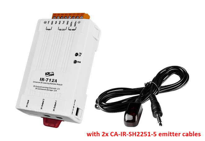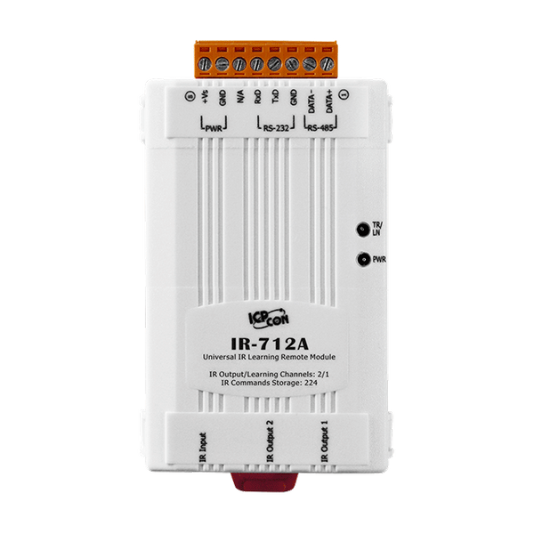 IR-712A to uniwersalny moduł pilota zdalnego sterowania IR, który może uczyć się komend IR różnych urządzeń elektronicznych. Nauczone komendy mogą być przechowywane w module lub zapisywane do pliku. IR-712A oferuje 2 kanały wyjściowe IR do indywidualnego lub jednoczesnego sterowania wieloma urządzeniami. Dostarczone interfejsy RS-232 i RS-485 z protokołami Modbus RTU i DCON zapewniają elastyczne rozszerzenie i kontrolę nad modułami. Ponadto, narzędzie programowe IR-712A zapewnia użytkownikom łatwą konfigurację, naukę, testowanie i przechowywanie komend IR. Jako zamiennik pilotów zdalnego sterowania IR i moduł, który można łatwo zintegrować z urządzeniami nadrzędnymi Modbus (np. PAC, PLC, PC itd.), IR-712A doskonale nadaje się do automatyki domowej i budynkowej.
