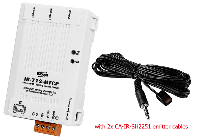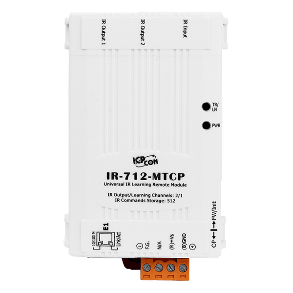 IR-712-MTCP to uniwersalny moduł zdalnego sterowania IR, który potrafi uczyć się poleceń pilotów IR różnych urządzeń elektronicznych. Nauczycielskie polecenia mogą być przechowywane w module lub zapisywane w pliku. IR-712-MTCP oferuje 2 kanały wyjściowe IR do indywidualnej lub jednoczesnej kontroli wielu urządzeń. Dołączony interfejs Ethernet z protokołami Modbus TCP/UDP i DCON zapewnia elastyczną rozbudowę i kontrolę nad modułami. Ponadto, narzędzie IR utility umożliwia łatwą konfigurację, naukę, testowanie i przechowywanie poleceń IR. Jako zamiennik pilotów zdalnego sterowania IR oraz moduł, który można łatwo zintegrować z urządzeniami klienckimi Modbus (np. PAC, PLC, PC itd.), IR-712-MTCP doskonale nadaje się do inteligentnych domów i automatyki budynkowej.