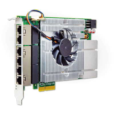GPOE-6P to pełnowymiarowa karta Power over Ethernet IEEE 802.3at/bt (PoE) PCI Express x4 wyposażona w 6 złącz RJ-45 x10/100/1000Base-T(X) PoE z całkowitym budżetem mocy 180W przy maksymalnie 90W na port.