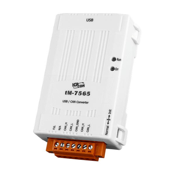 ICP DAS oferuje różnorodne rozwiązania konwerterów USB na CAN, które są szeroko polecane na rynku. Konwertery USB na CAN pomagają użytkownikom w realizacji komunikacji z siecią CAN poprzez interfejs USB. Aby sprostać wymaganiom kosztowym, oferujemy nowe rozwiązanie konwertera USB na CAN - tM-7565. tM-7565 to mały konwerter USB na CAN, który zmieści się w węższych przestrzeniach dzięki swoim niewielkim rozmiarom. Posiada interfejs USB, dzięki czemu jest łatwy w użyciu z laptopem. Posiada izolację po stronie zasilania i po stronie magistrali CAN, co zapewnia dobrą wydajność. Funkcje tM-7565 są w pełni kompatybilne z I-7565. Dodatkowo oferuje nową funkcję, taką jak tryb tylko do nasłuchu. Użytkownik może korzystać z tej funkcji do monitorowania wiadomości magistrali CAN i diagnostyki błędów. Dzięki powyższym cechom tM-7565 jest ekonomicznym i praktycznym rozwiązaniem konwertera USB na CAN.