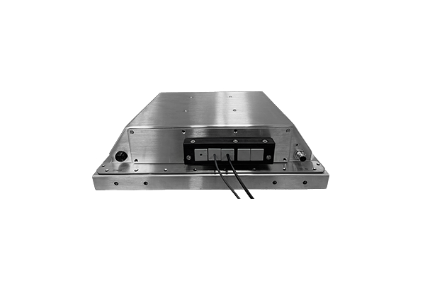 Interfejs I/O komputera wyprowadzono za pomocą wodoszczelnych złącz śrubowych M12 i wyposażono w 4 porty USB, 2 porty COM, 1 port LAN oraz złącze zasilające. Niezbędne okablowanie wraz z zasilaczem znajdują się w komplecie z komputerem.