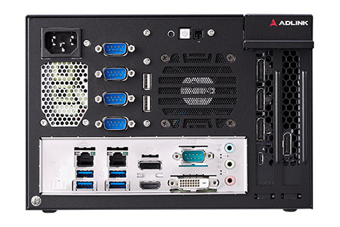 Bogaty interfejs I/O wyposażono w złącza: 1x Display Port (4096 x 2304 @ 60 Hz), 1x DVI-D (1920 x 1200 @ 60 Hz), 1x HDMI (4096 x 2160 @ 30 Hz), 2x GbE LAN, 1x RS-232/422/485, 4x RS-232, 4x USB 3.1 Gen1, 2x USB 2.0, 1x 8bit GPIO, Mic-in, Line-out oraz Line-in.