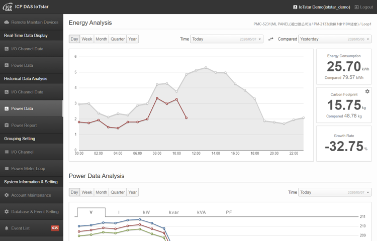 With IoTstar, users can complete the system setting only by a few clicks on Web page, and perform the Remote Access (Status Monitoring, System Setting, and Firmware Update) and Data Service (Sensor data collected and imported into Database) operations for each WISE/PMC/PMD. Through the SQL database command, IoTstar can be quickly integrated with the Cloud platforms, data analysis tools (Power BI, Google Data Studio, etc.) or SCADA systems to help users quickly build the Cloud "IoT + Big Data" application and significantly reduce the time and cost for the implementation of Cloud "IoT + Big Data" application.