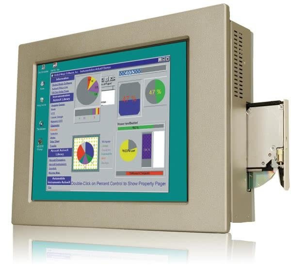 Wytrzymały aluminiowy przedni panel z rezystancyjnym (5-wire) ekranem 17", rozdzielczością 1280 x 1024 i jasnością 350cd/m2 wykonano zgodnie z normą IP66.