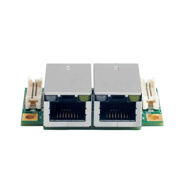 Przemysłowa karta Mini PCIe z 2x Intel® I210 Gigabit LAN, dual 10/100/1000 BASE-T, IEEE 802.3, IEEE 802.3u, IEEE 803.3ab Compliant, -40°C to 85°C, śledź w komplecie