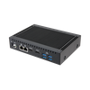 NUC-TGU-I3-A1 dodatkowo wyposażono w złącza 4x USB 3.2 Gen2 (10 Gbps), 2x USB 2.0, 2x COM RS-232/422/485, 2x HDMI 2.0b (do 4096 x 2304@60Hz), 1x GbE LAN RJ-45, 1x 2.5GbE LAN RJ-45, Line-out, Mic-in oraz 4 złącza antetnowe dla WiFi / BT i połączeń komórkowych