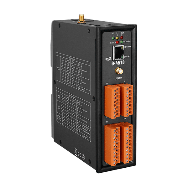 Seria G-4510 to energooszczędne PAC z ładowarką słoneczną przeznaczone do systemów M2M (Machine to Machine). Może być stosowana w monitoringu hydrologicznym lub systemie monitoringu osuwisk. G-4510 może być używany do bezprzewodowej transmisji danych i innych funkcji dzięki opcjonalnemu modułowi komunikacyjnemu 4G/NB. Z opcjonalnym modelem GPS, G-4510 może również pełnić funkcję systemu śledzenia GPS dla zarządzania pojazdami lub systemów morskich. Cechy serii G-4510: Ładowarka słoneczna, interfejs Ethernet, opcjonalny moduł GPS, opcjonalny moduł komunikacyjny 4G/NB, 3 wejścia cyfrowe, 3 wyjścia cyfrowe, 8 wejść analogowych, 1 wyjście przekaźnikowe.
