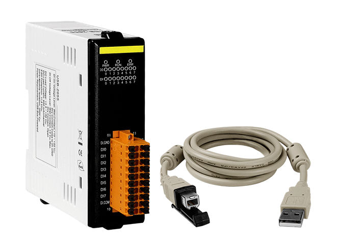 USB-2055 to urządzenie wejść/wyjść USB full-speed z 8 kanałami wejść cyfrowych i wyjść cyfrowych. Wszystkie kanały wejść cyfrowych mogą być używane jako 32-bitowe liczniki. Dodatkowo, kanały wejść cyfrowych mogą mieć wybierany typ źródła lub odbiornika za pomocą połączeń przewodowych. USB-2055 oferuje także 16 wskaźników LED, które mogą być używane do monitorowania stanu kanałów wejść i wyjść cyfrowych. Podwójna funkcja watchdog z konfigurowalnymi wartościami uruchomienia i zabezpieczeń zapewnia ciągłą pracę urządzenia, nawet w trudnych warunkach.