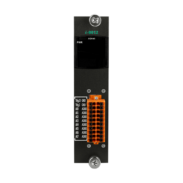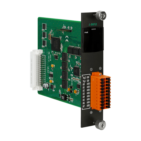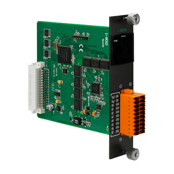 I-9012 to wysokowydajny moduł wejścia analogowego o rozdzielczości 16 bitów i prędkości próbkowania do 200 kS/s na kanał. I-9012 oferuje 8 kanałów, a zakres wejściowy można zaprogramować w przedziale ± 5 V, ± 10 V. Wyjście wyzwalające oraz pin wejścia wyzwalającego umożliwiają jednoczesne próbkowanie wielu modułów I-9012. Moduł zapewnia także ochronę ESD o wartości 4 kV i izolację między modułami o wartości 2500 VDC.